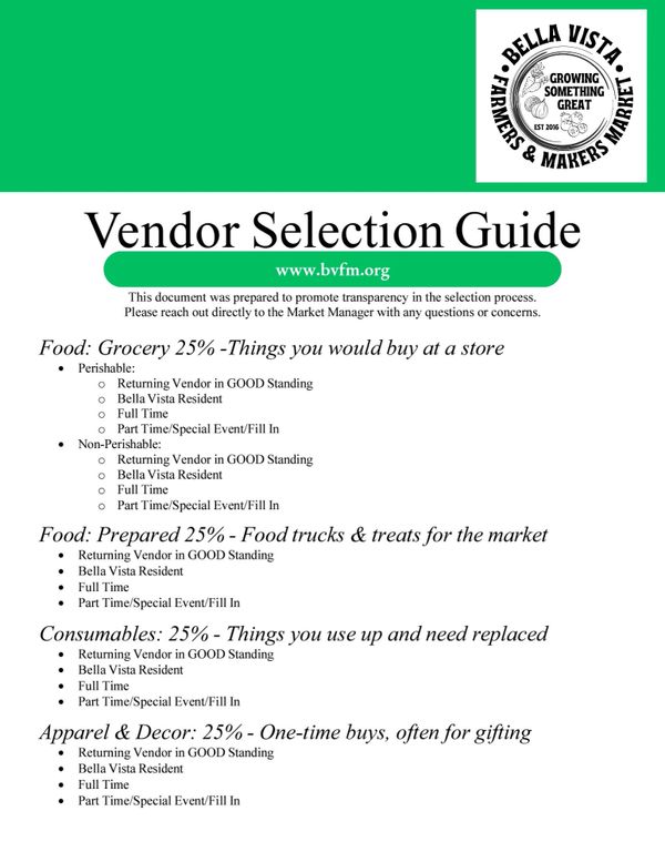 The Bella Vista Farmers & Makers Market, LLC is independently owned & operated.